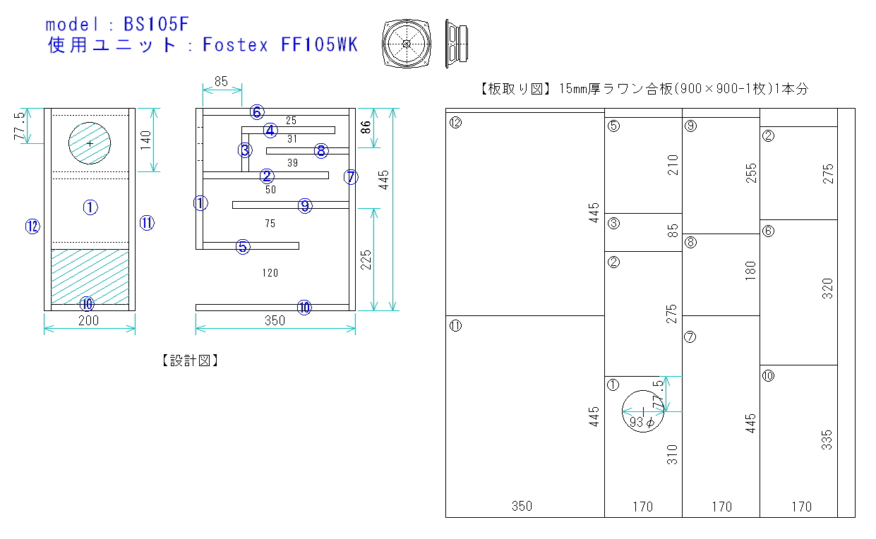 | ●BS-105F(Bookshelf,for 10cm Full-Range Driver) |