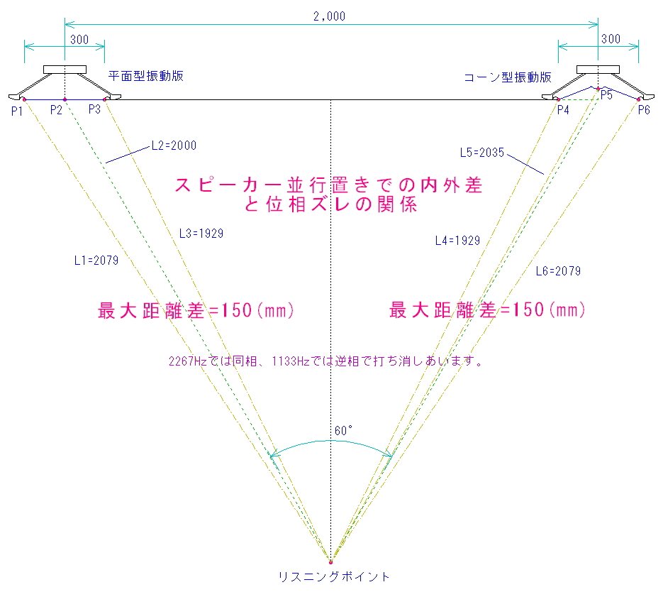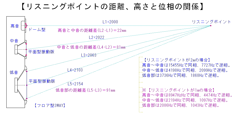 | ■リスニングポイントの距離、高さと位相の関係 |