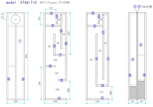 | model:STAG-T10 (トールボーイ型スタガード・バックロードホーン) |