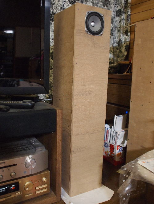| 【使用ユニット】Fostex FF105WK、MarkAudio CHR-70v3、PARK Audio DCU-F121A、他10cmフルレンジ ※音楽に刺激を求めるならFF105WK、安らぎを求めるなら70v3がオススメです(笑) 【材料】15mm厚ラワン合板900×1200mm、1枚-1本分 7mm厚ラワン合板900×450mm、1枚-1本分 SPターミナル、コード、ボンド、クギ等 【本体サイズ】185×900×235mm |
