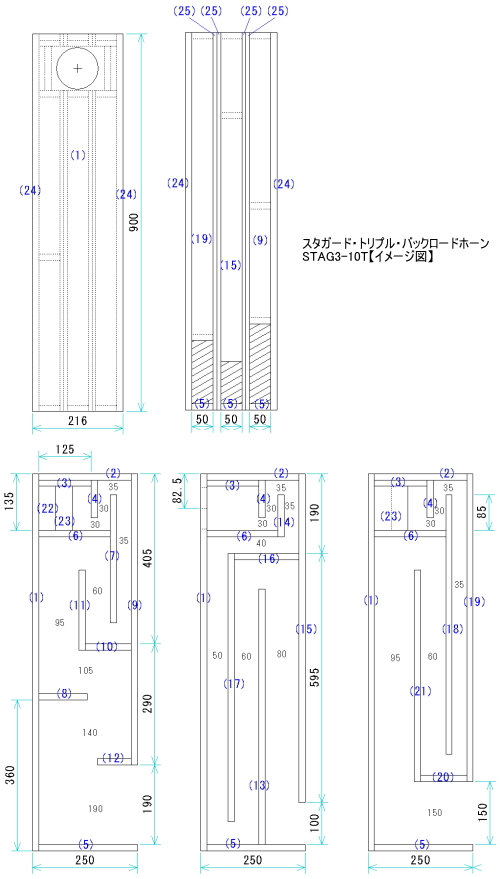 | model:STAG3-10T スタガード・トリプル・バックロードホーン 10cmフルレンジ用トールボーイタイプ |