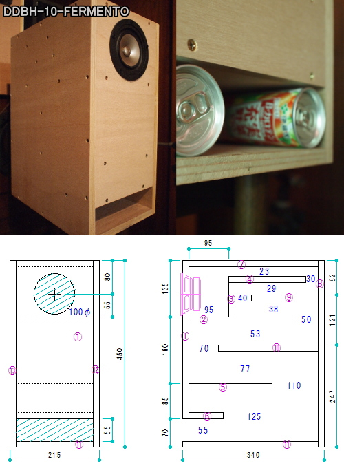 | model:DDBH-10-FERMENTO (10cmフルレンジ・前面開口型ダンプダクト・バックロードホーン) ----作った後、弄って遊びたい方にオススメです(笑)---- |